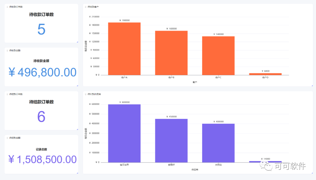在建材销售过程中,财务管理是一项繁琐而重要的任务。繁杂的财务流程和收付款数据管理,常常让建材门店头疼不已。可可软件的建材销售门店管理平台还提供全面的财务管理模块,包括发票管理、收款跟踪、财务报表等功能。这将简化财务管理流程,提高财务数据的准确性和可追溯性,让您轻松应对财务管理的挑战。这是数字化转型升级中财务管理的重要一环。